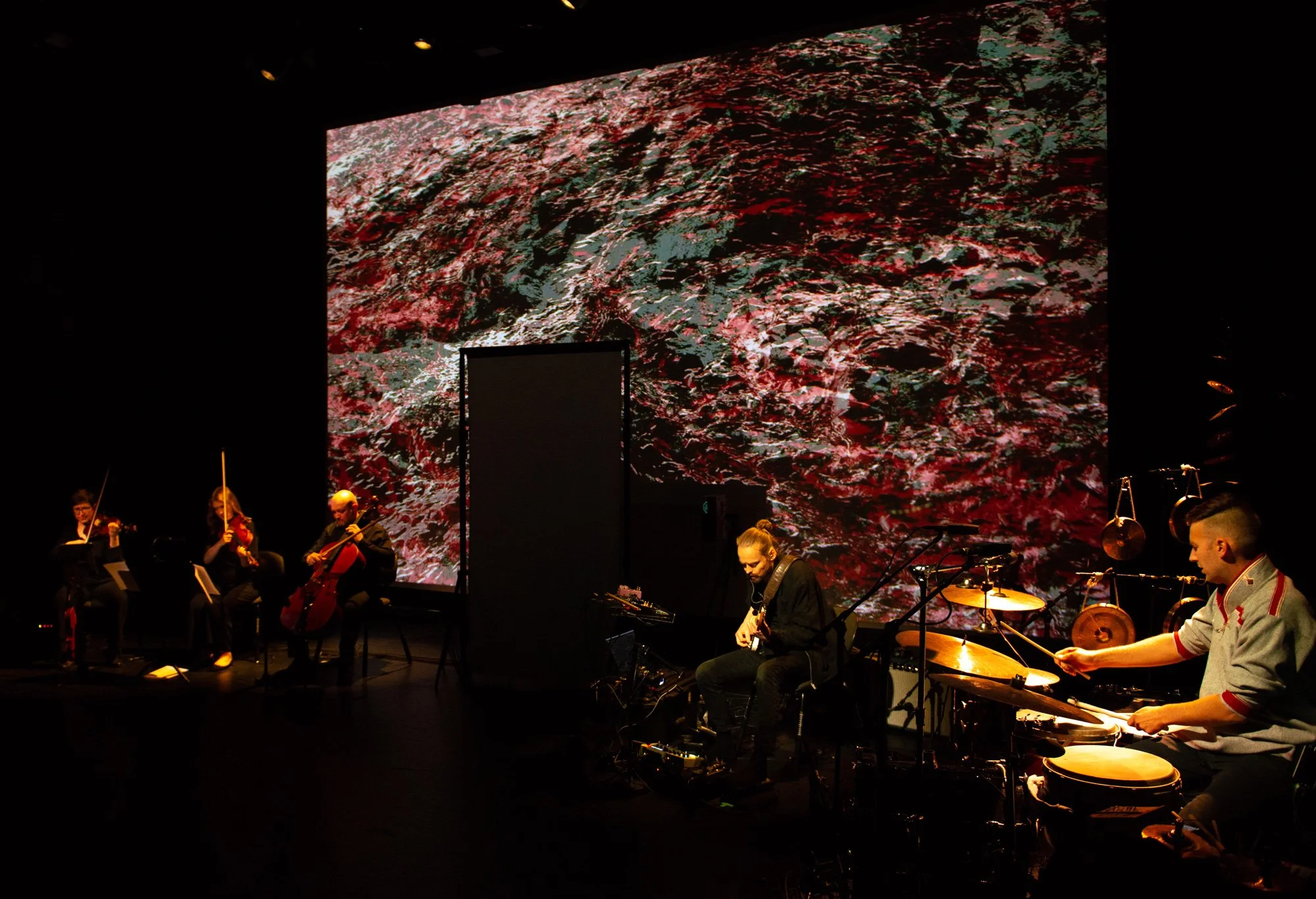 ‹‹Čuovga/ Light›› 65 min. Commissioned piece for Littfest, written for drums, guitar and string quartet, consisiting of poems by six Sámi poets. Since its premiere in 2023, it has been on two tours under the direction of Musikk i Nordland and has played at, among others, Festspillene i Nord-Norge.